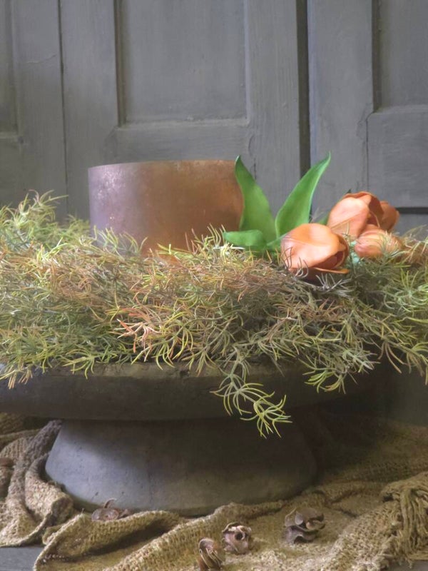 - Plaats de krans op ons prachtige plateau op voet en voeg een mooi windlicht toe voor een gezellige centerpiece op je tafel.