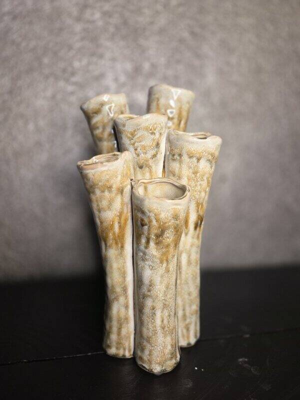 Hele mooie robuuste tulpenvaas. Natuurlijk leuk om op te maken met tulpen maar zijde bloemen staan er ook prachtig in!