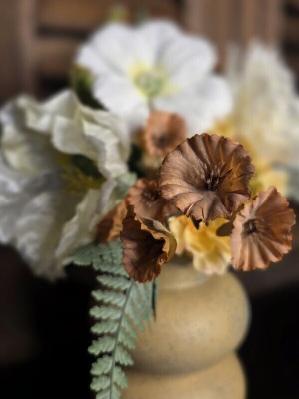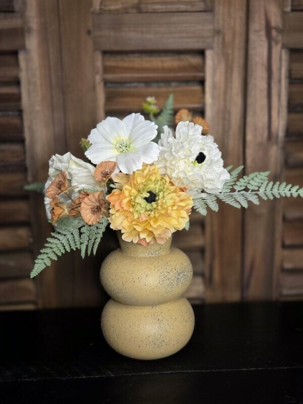 Leuk schattig vaasje compleet met zijde boeket.
